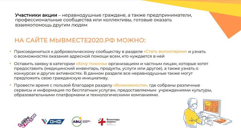 За помощью к волонтерам могут обратиться люди, старше 60 лет и маломобильные граждане. Единый телефон 8-800-200-34-11. Это федеральная «горячая линия» проекта. Далее заявка поступает в личный кабинет регионального штаба. Волонтеры штаба связываются с обратившимся, уточняют, что ему необходимо. А уже выездная группа отправляется отрабатывать заявки.