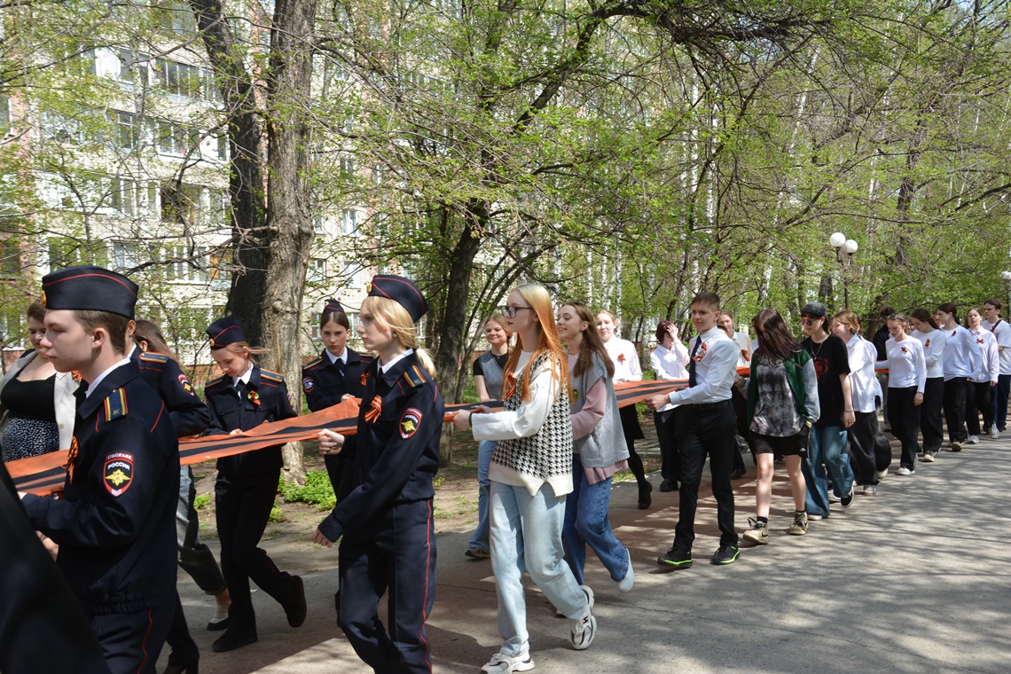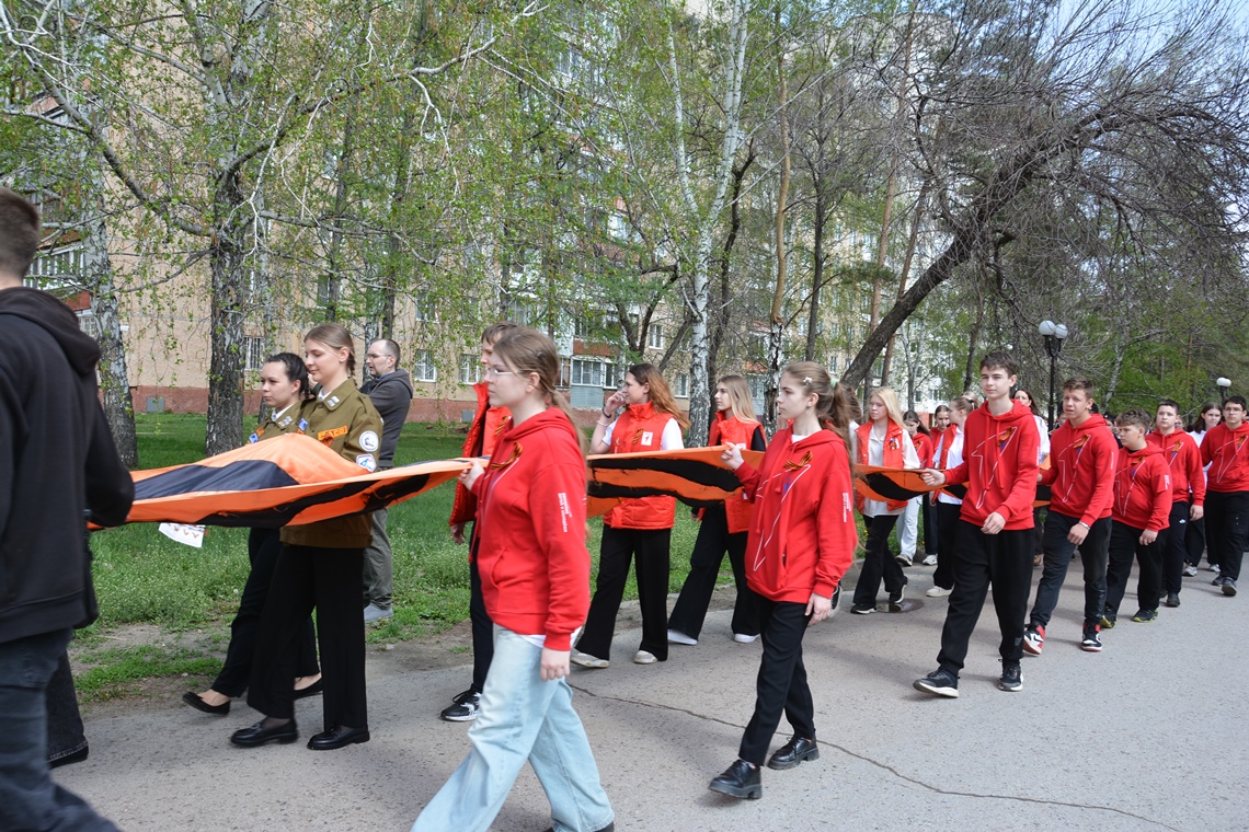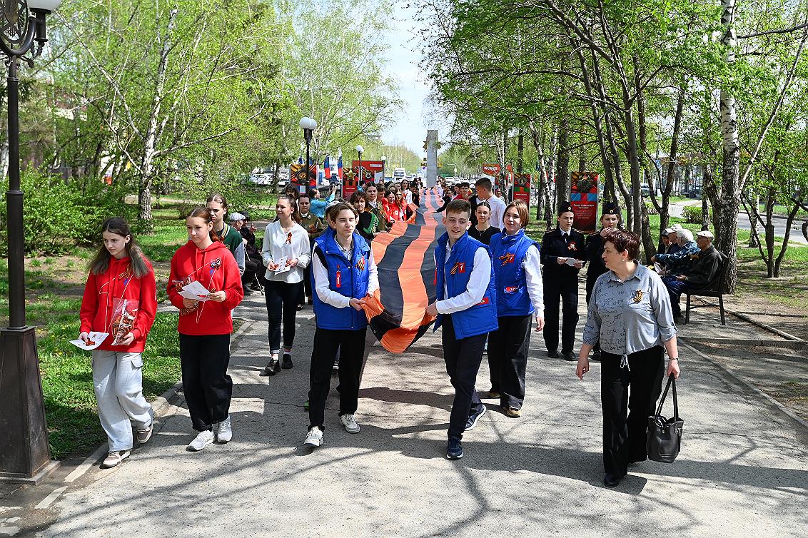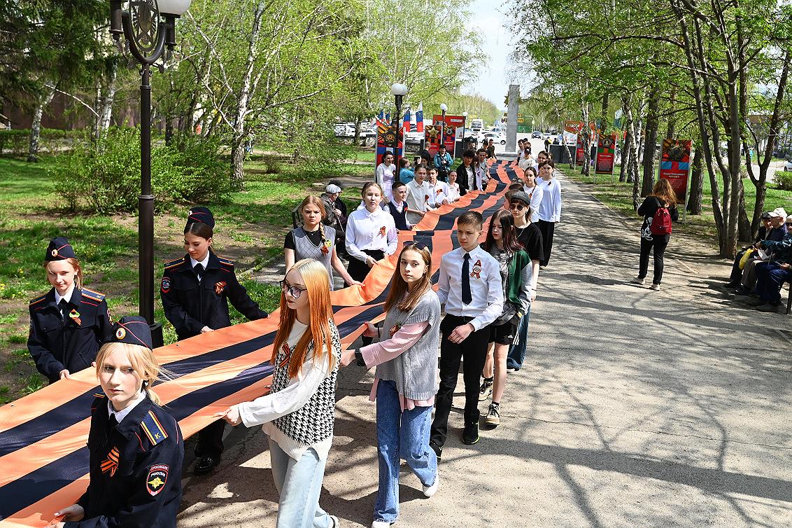 80-метровую Георгиевскую ленту пронесли по Аллее Победы студенты, школьники и волонтеры