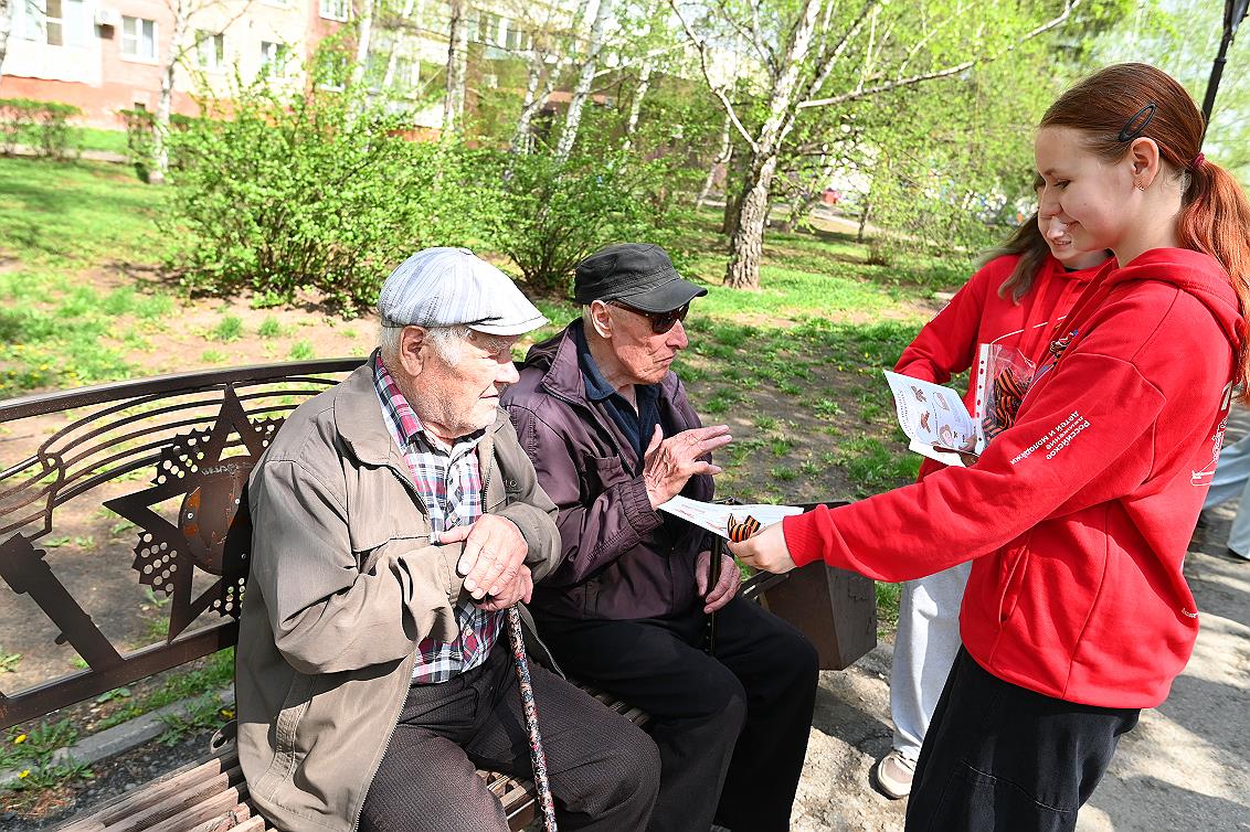 Мероприятие, организованное администрацией Ленинского района, сопровождалось раздачей георгиевских ленточек и буклетов, рассказывающих историю ее появления и правил ношения символа воинской славы.