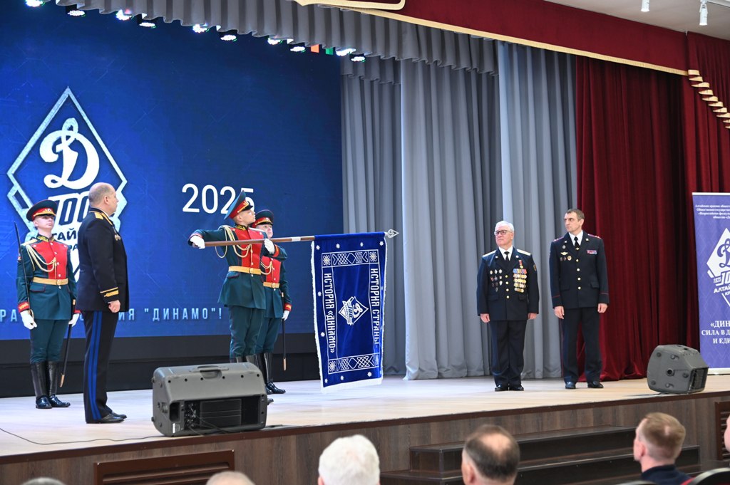 Состоялась церемония передачи флага «100 лет Алтайской краевой организации Общества «Динамо». Его вручил членам краевой организации начальник Управления ФСБ России по Алтайскому краю генерал-майор Роман Плотников, который возглавляет региональное отделение Всероссийского физкультурно-спортивного Общества.