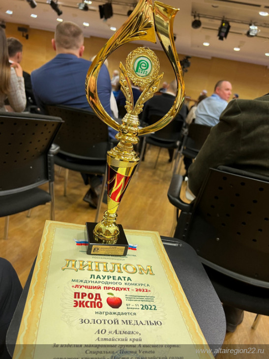 Алтайские макароны также в списке победителей выставочных конкурсов. Так, макароны ТМ Pasta Venetia акционерного общества «Алмак» удостоены золотой медали конкурса «Лучший продукт - 2022», а паста с гималайской солью - кубка Гран-при за лучший инновационный продукт.