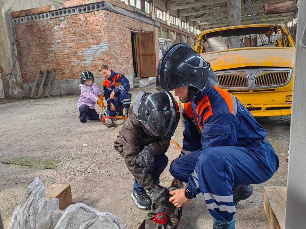 Кроме того, школьники смогли примерить на себя роль спасателя и испытать гидравлический инструмент.