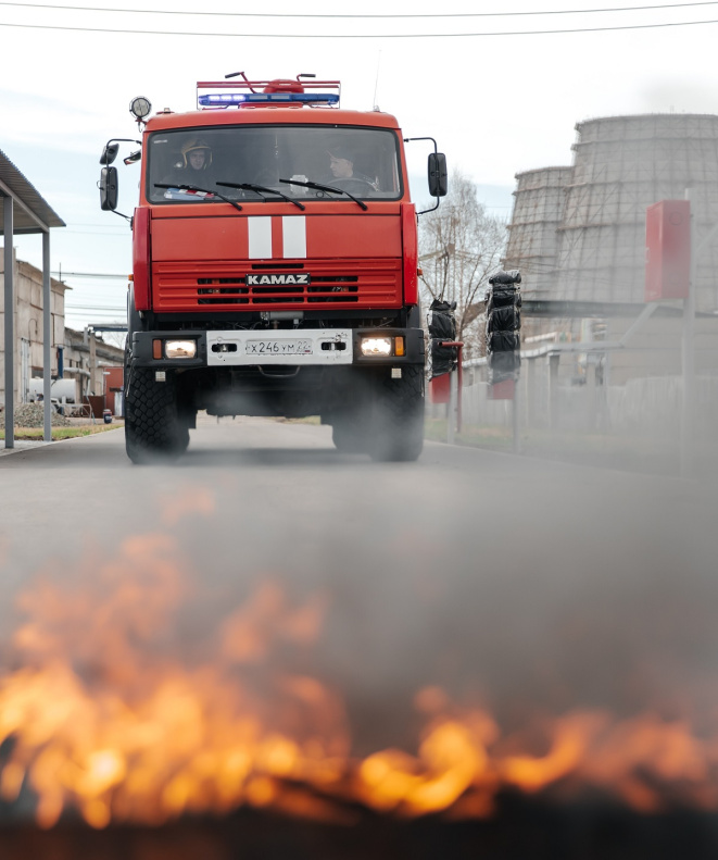Начальник смены охраны сообщает об этом диспетчеру станции. Оперативно вызывают пожарную службу. На место экстренно прибывают сотрудники пожарной части, которые локализуют возгорание.