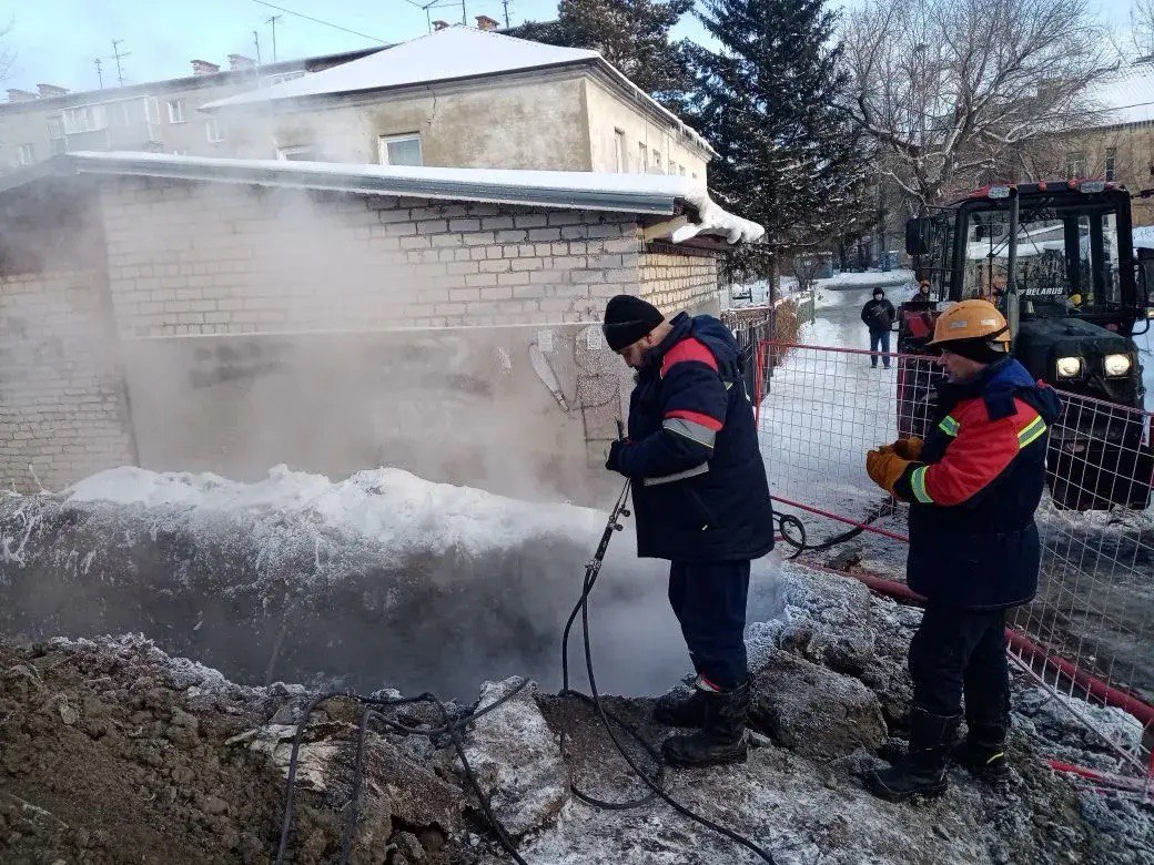 АО «Барнаульская теплосетевая компания «СГК-Алтай»устраняет повреждение теплосети на ул. Новоугольной