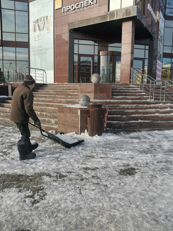 Сотрудники комитета по развитию предпринимательства, потребительскому рынку и вопросам труда администрации города контролируют работы по очистке от наледи прилегающей территории предприятий и торговых точек.