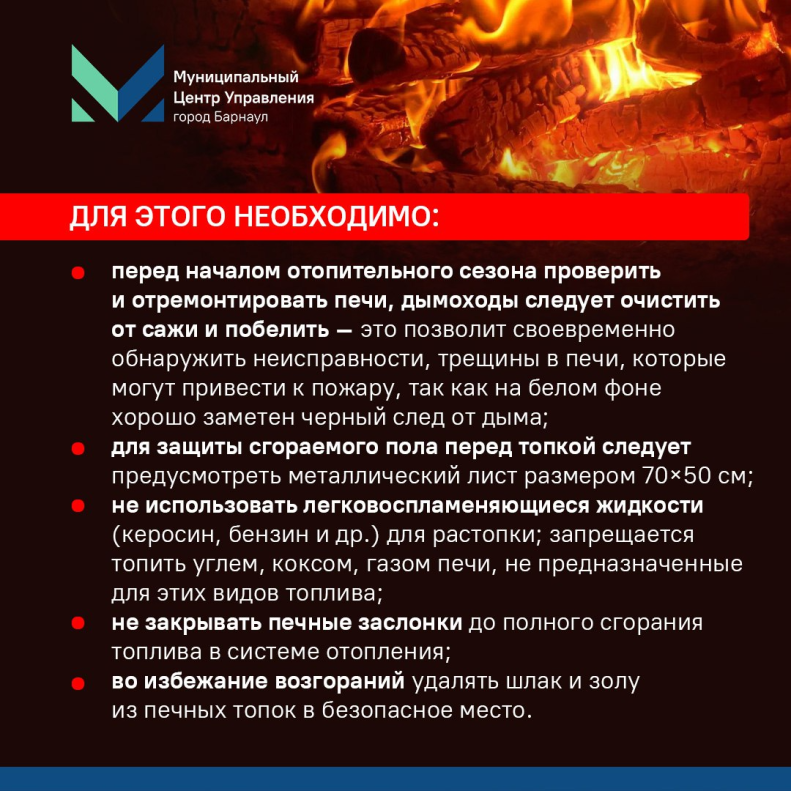 Барнаульцам напоминают о правилах пожарной безопасности при эксплуатации печного оборудования