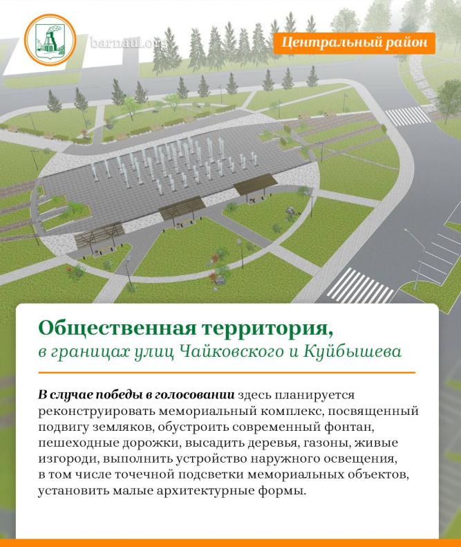 Барнаульцы продолжают выбирать общественную территорию, которую в следующем году преобразят по федеральному проекту «Формирование комфортной городской среды» нацпроекта «Инфраструктура для жизни». В настоящее время голосовании приняли участие более 30 тысяч жителей.