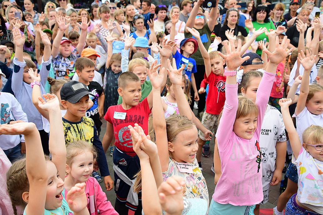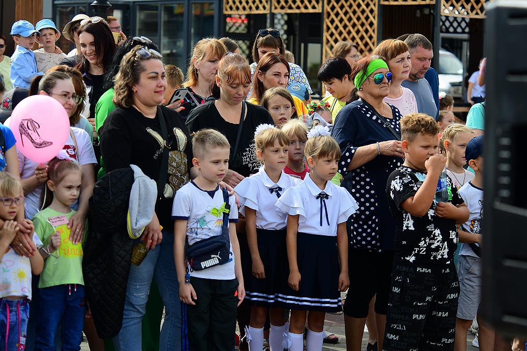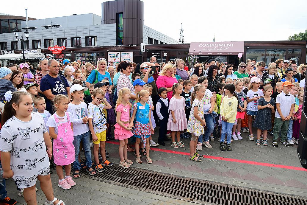 Прежде чем торжественно передать ранцы будущим школьникам, для ребят организовали развлекательную программу с аниматорами. А также на сцену вышли певцы и певицы из детских коллективов города.
