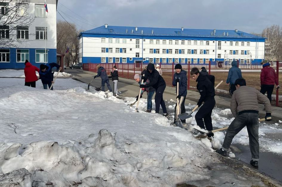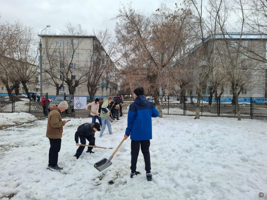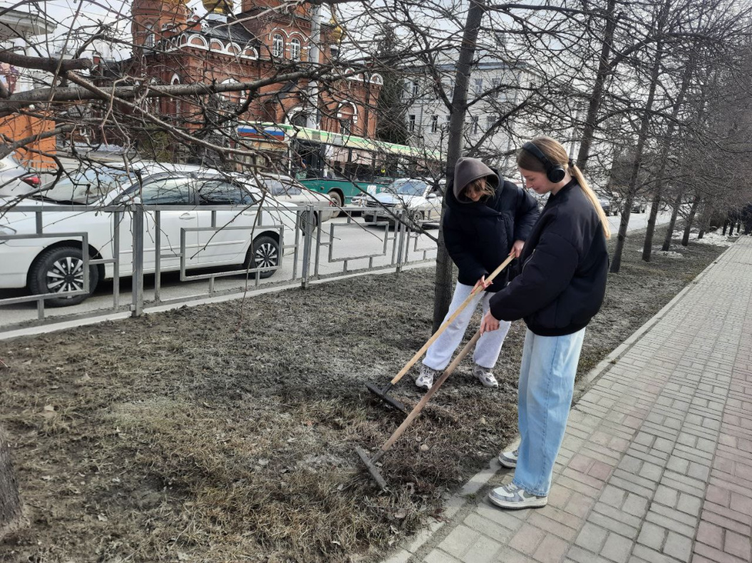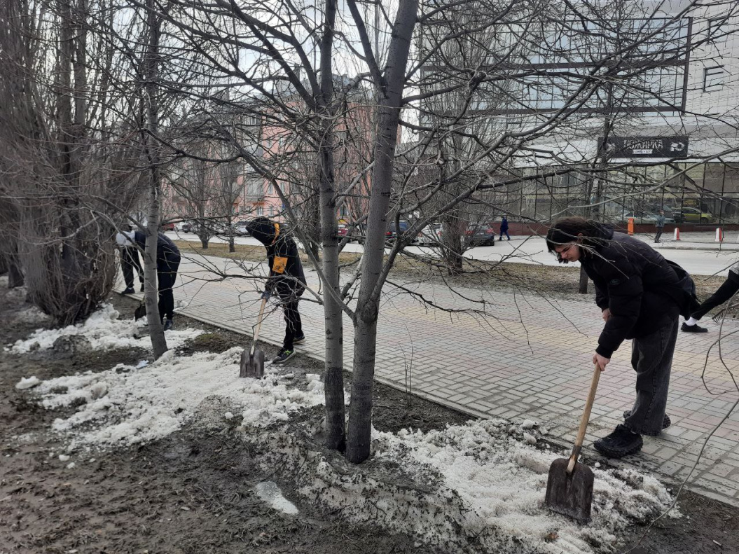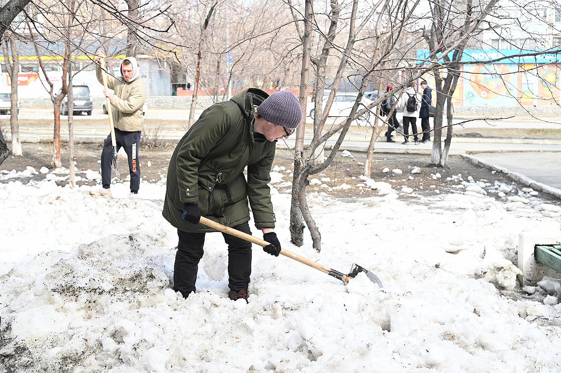 В Железнодорожном районе студенты лицея активно участвовали в уборке территории: они не только ворошили снег, но и убирали вытаявший мусор, приводя в порядок зеленую зону по улице Профинтерна, 16-20.