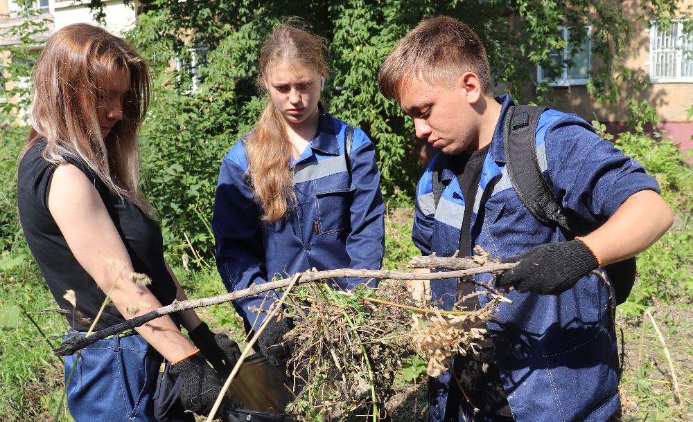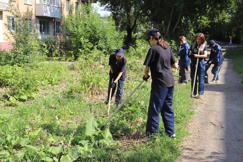 Бойцы экологического отряда «Зеленая волна» приводят в порядок зеленые уголки в Железнодорожном районе