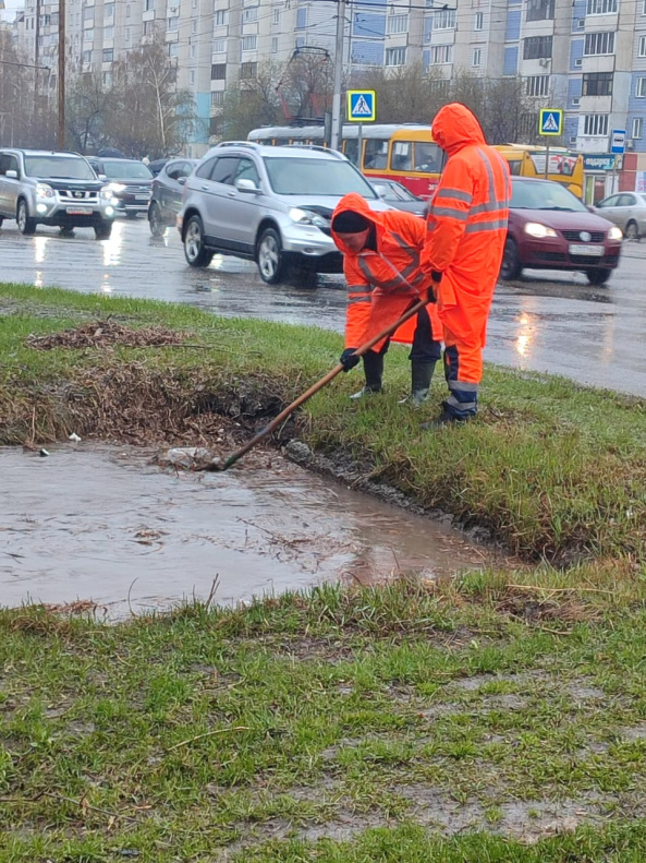 Бригады уже находятся на месте и приступили к очистке ливневок от мусора и травы, которые будут скапливаются на поверхности решеток с потоком воды. Данный вид работ необходим для увеличения пропускной способности.