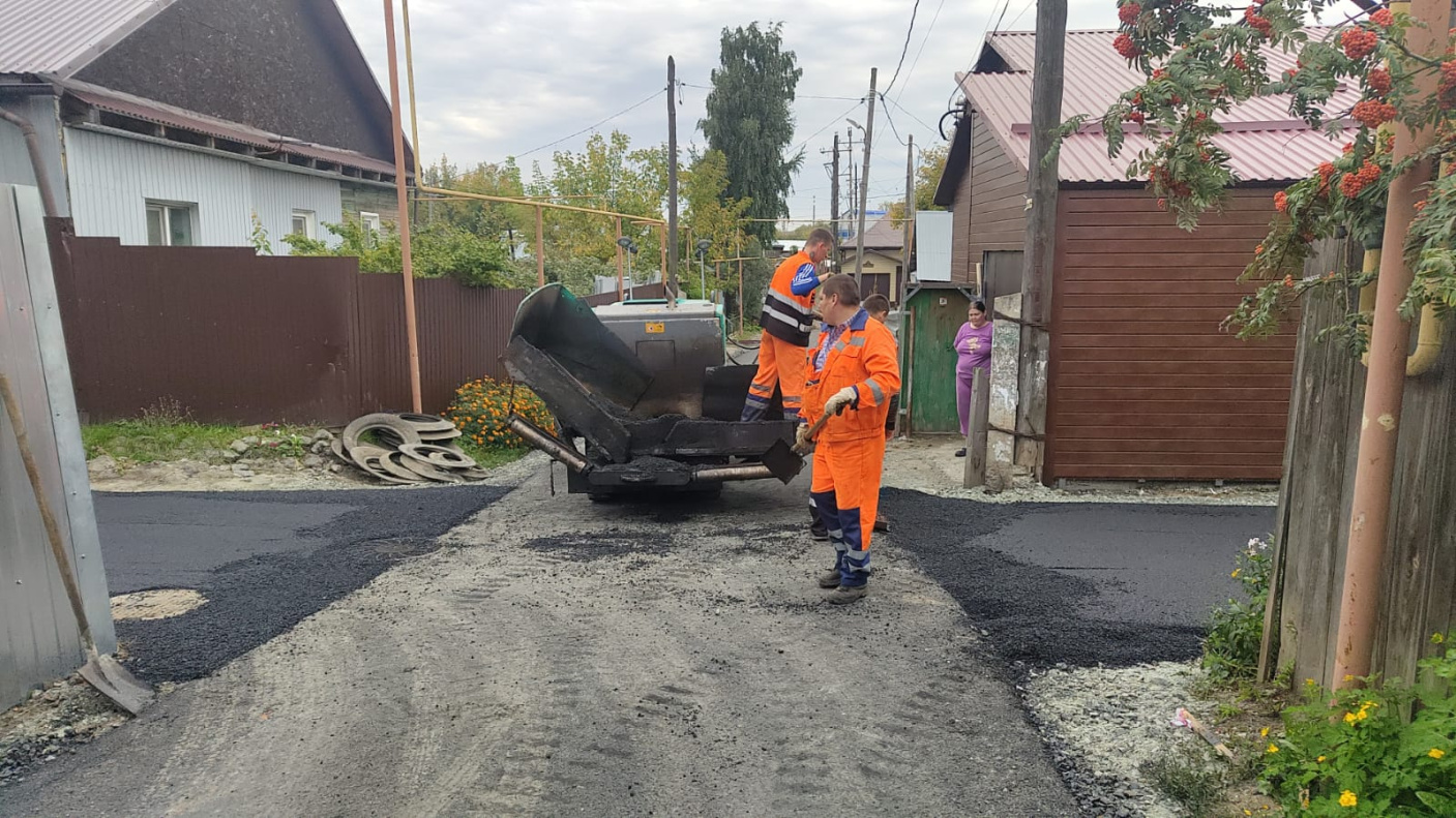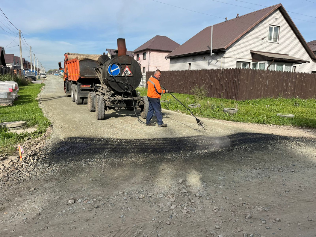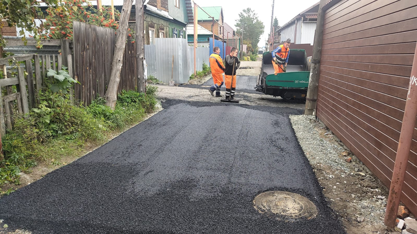 Дорожная служба асфальтирует улицу Мятную в микрорайоне Спутник