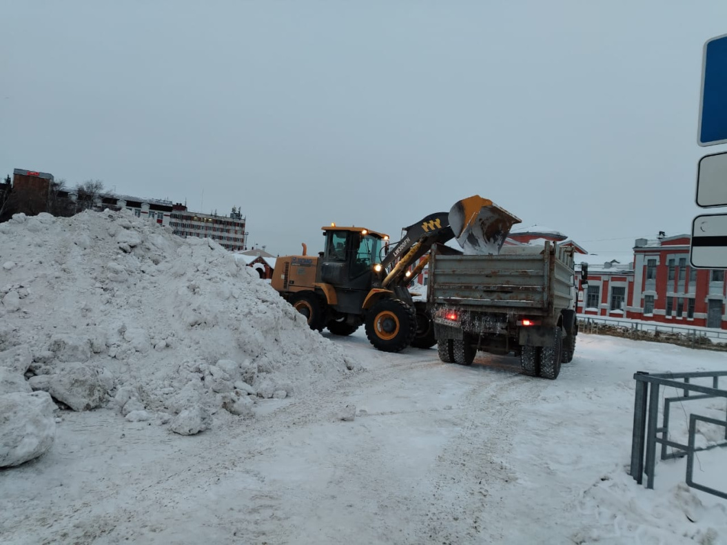 Вывоз снега организован с улиц Георгия Исакова, Беляева, Глушкова, Молодежная, с площади Победы, с проспектов Космонавтов, Социалистического и Комсомольского, с ул. Центральная в поселке Лебяжьем.
