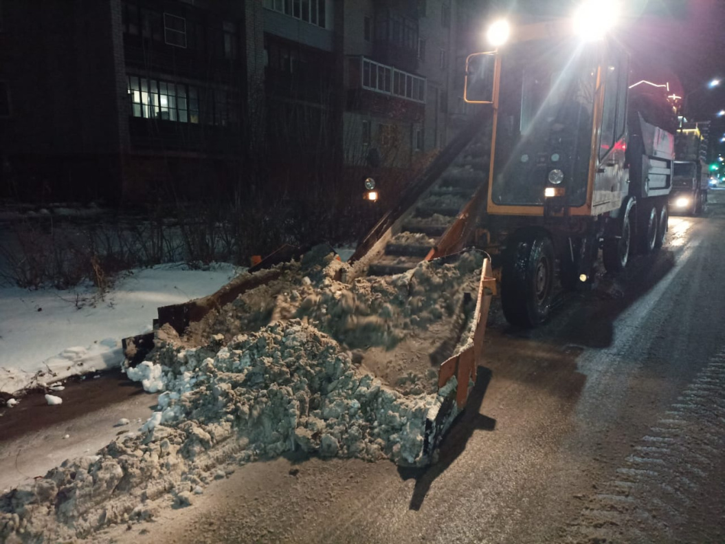 Всего в ночную смену для работ на дорогах и тротуарах было задействовано 103 единицы техники.