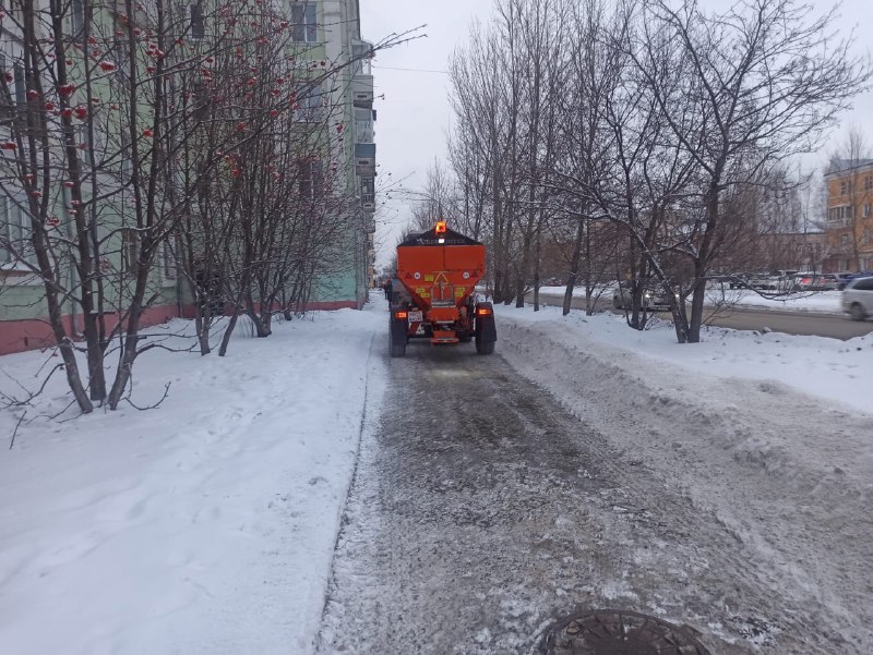 Городские дорожные и коммунальные службы продолжают противогололедную обработку