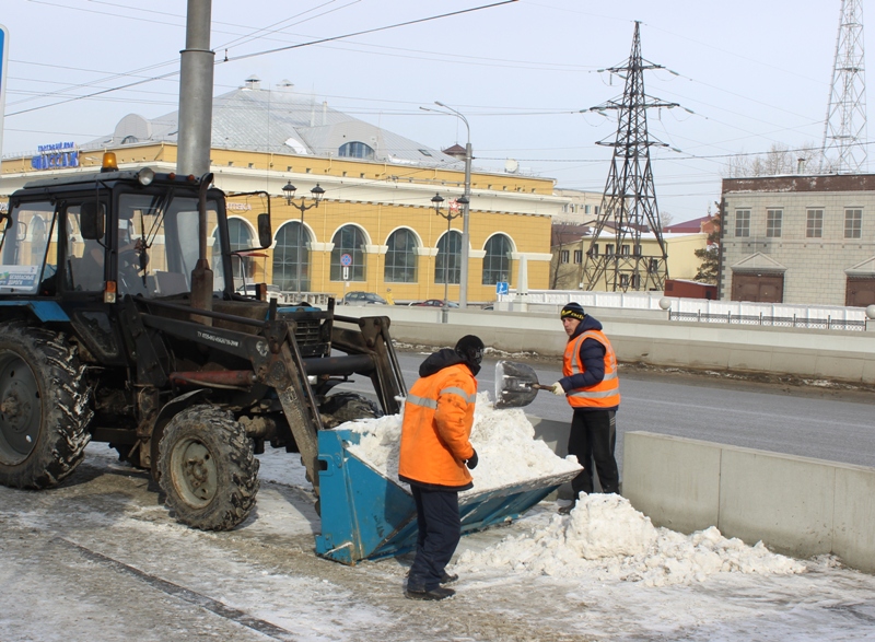Дорожное хозяйствоВсего силами городской дорожной службы от снега и наледи очищается 119 барнаульских тротуаров. Большая часть работы выполняется механизированным способом: пешеходные дорожки прометаются тракторами со щетками, кучи снега и скол льда вывозятся самосвалами на снегоотвалы. Тем не менее, без ручного труда дорожникам по-прежнему не обойтись. Ежедневно в работе задействуют около 100 уборщиков территории.