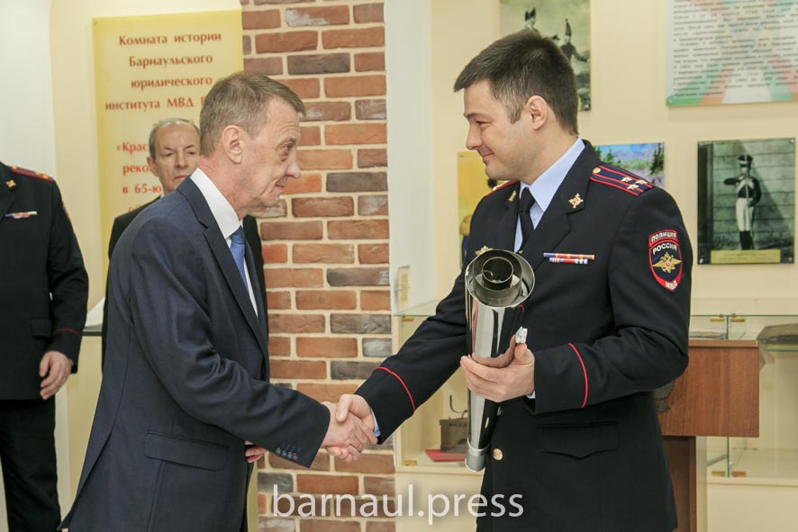 - Я думаю, что этот экспонат займет достойное место в музее и в истории развития города Барнаула, - обратился к личному составу института Вячеслав Франк. Также глава города напомнил об истории факела и его значимости для краевой столицы и поблагодарил Губернатора Алтайского края Виктора Томенко за поддержку в организации доставки и зажжения Вечного огня на Мемориале Славы в Барнауле.