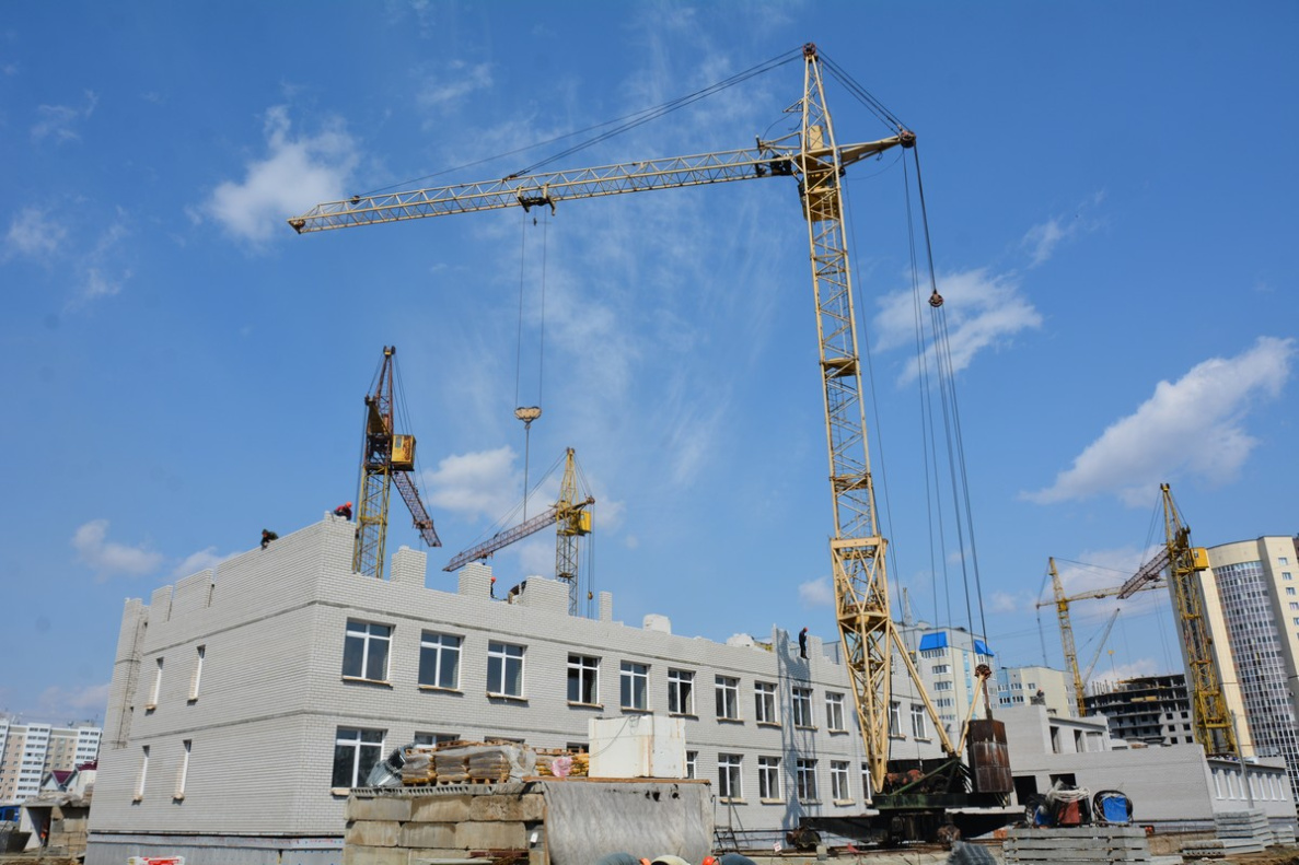 Сегодня на объекте в постоянном режиме задействовано четыре башенных крана, самоходный кран, фронтальный погрузчик.