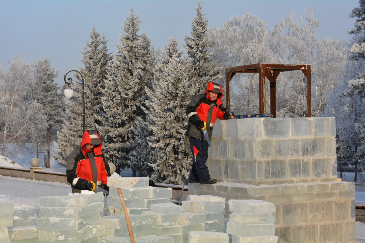 Сегодня, 15 декабря, глава города Сергей Дугин проверил ход работ по обустройству снежного городка на площади Сахарова. Несмотря на почти двадцатиградусный мороз, работы идут полным ходом: выполняется кладка сооружений из ледовых блоков, монтируется елочная иллюминация и наружное освещение