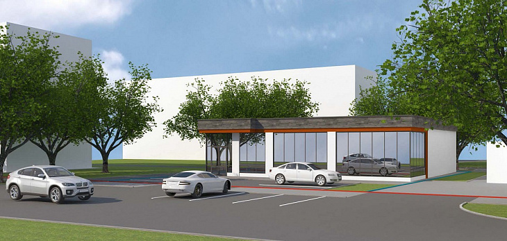 Реконструируемое одноэтажное здание по адресу ул. Г. Исакова, 208а находится в центре жилого квартала, состоящего из пяти- и девятиэтажных домов. Участок, на котором расположен реконструируемый магазин, небольшой по площади, подъезды к нему и пешеходные проходы сформированы и останутся неименными. Вход в здание будет максимально удален от жилого дома и перенесён на угол строения, на перекрёсток. Чтобы не мешать движению транспорта, здание решили заглубить на участке, а перед ним расположить шесть парковочных мест. Площадь здания будет немного увеличена - до 284 кв.м, на участке выполнят благоустройство и озеленение. Отделано одноэтажное здание будет композитными материалами светлого цвета, а верхний портик будет под дерево. У магазина будет стандартное витражное остекление и подсветка по периметру здания и по контуру входной группы.