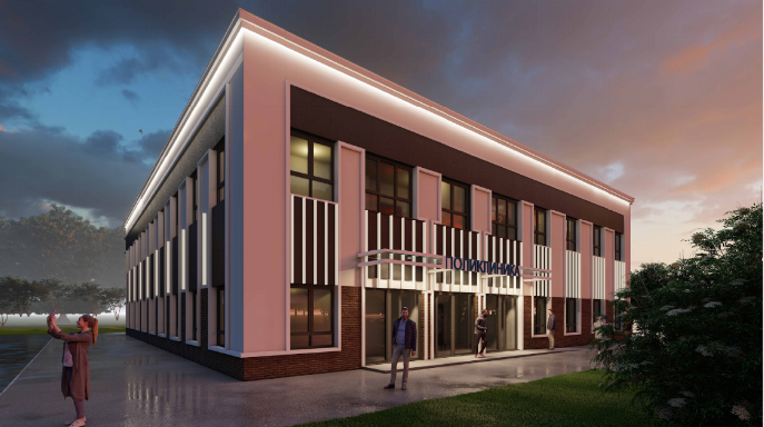Проект здания частной поликлиники по заказу компании ООО «Альфа-Строй» разработала «Мастерская Золотова». Однако в июне проект был отправлен на доработку.