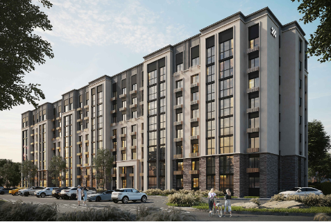 Участок под застройку находится в уже сложившемся жилом массиве посёлка. Здание рассчитано на 328 жильцов, а на придомовой территории предусмотрено 109 парковочных мест. Фасады на уровне общественных помещений и части жилого этажа облицуют клинкерной плиткой, остальную часть фасада - штукатуркой по типу «мокрый фасад. Цвет здания решили сделать в естественных природных оттенках, а контур фасада украсить мягкой подсветкой.