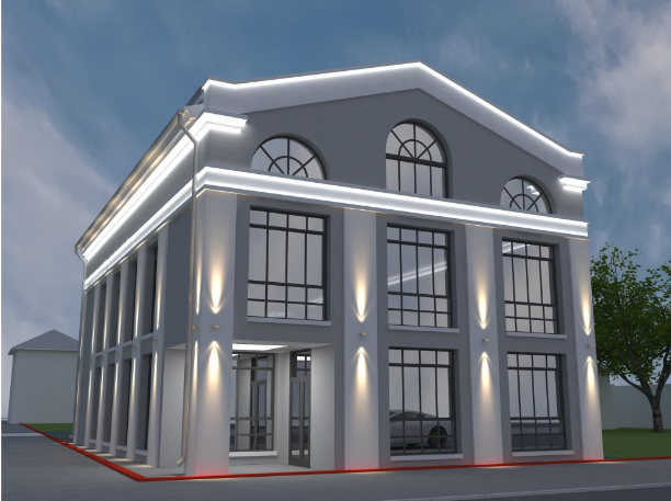 Разработчик пообещал дополнить проект и внести в материалы слайд с вечерней подсветкой здания.