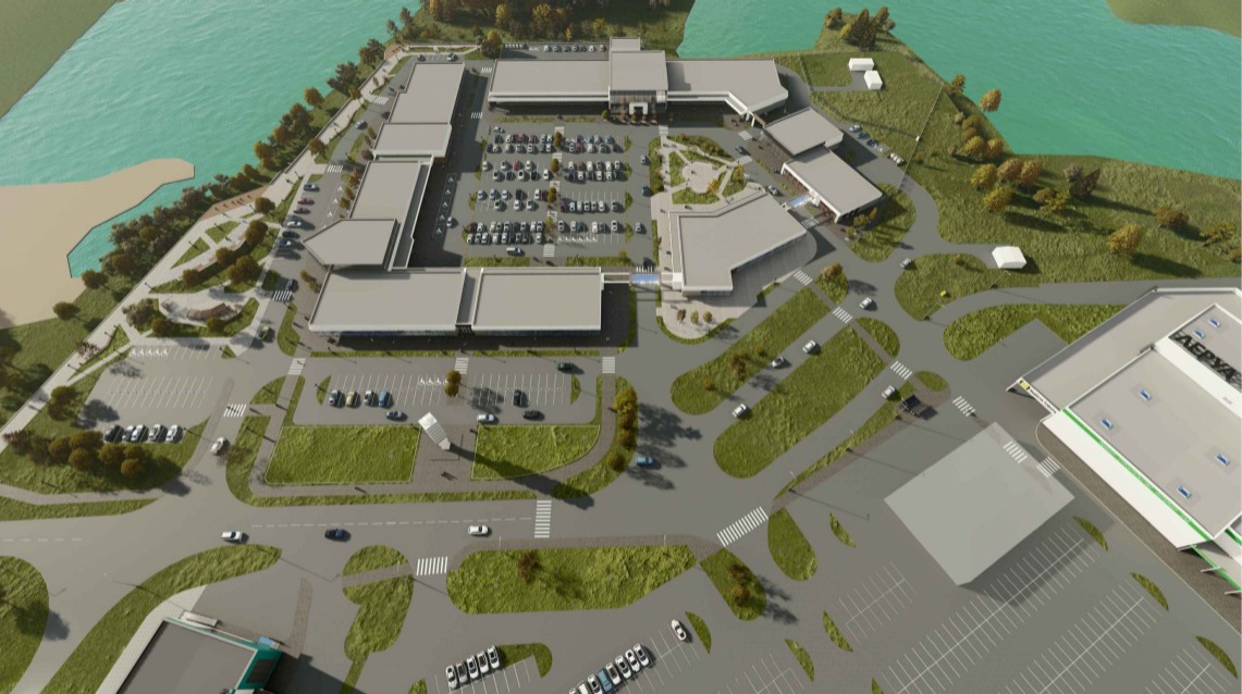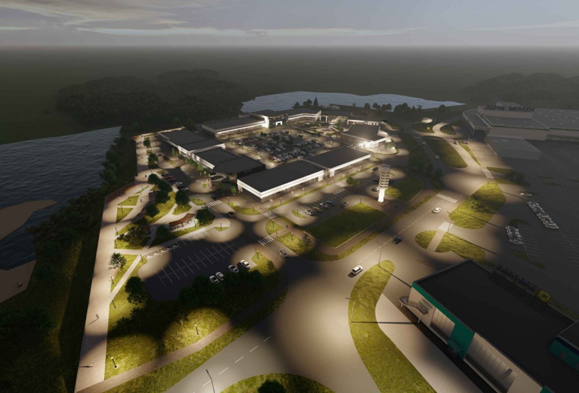 Новая концепция проекта строится на периметральной застройке одноэтажными зданиями с двухэтажными акцентными строениями, которая формируется вокруг центральной площади. Здания с изолированными входами соединят торговой проходной галереей. Торговые здания и пешеходная зона будут акцентированы ночной подсветкой.