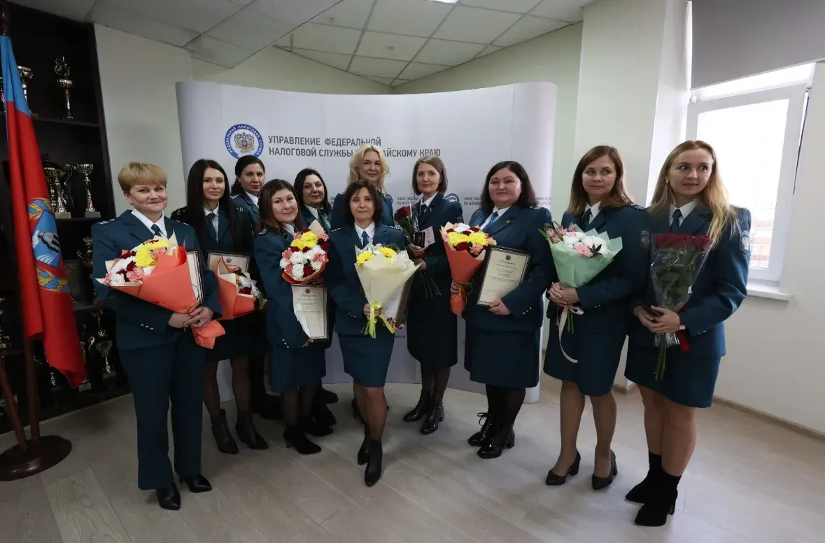 Благодарность Губернатора Алтайского края вручили начальнику правового отдела МИФНС России № 4 по Алтайскому краю Елене Бриль, начальнику отдела финансового и хозяйственного обеспечения МИФНС России № 4 по Алтайскому краю Инне Булавиной, начальник отдела камеральных проверок № 6 МИФНС России № 4 по Алтайскому краю Елене Лихошерстовой, начальнику отдела камеральных проверок № 5 МИФНС России № 4 по Алтайскому краю Ирине Васильевой, начальнику отдела камеральных проверок № 1 МИФНС России № 1 по Алтайскому краю Ольге Мамонтовой.
