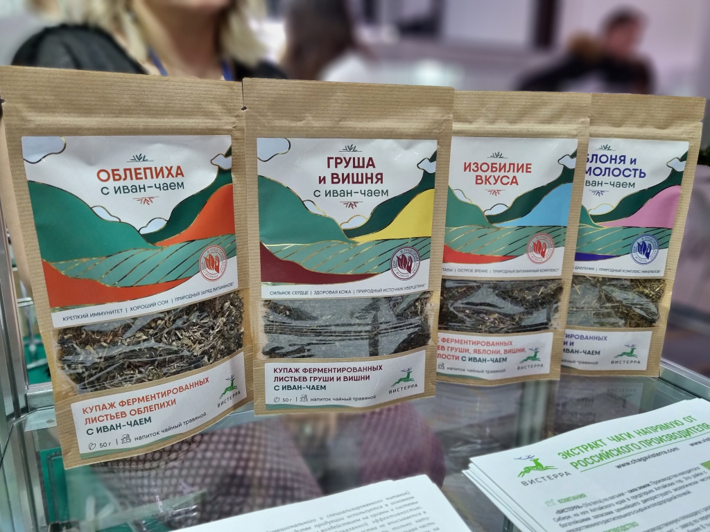 Компания «Вистерра» презентует на международной выставке новинки купажей ферментированных листьев плодовых деревьев садов самой компании - груши, яблони, вишни, жимолости, облепихи - с иван-чаем. Особый процесс ферментации сохраняет весь комплекс полезных веществ в компонентах напитка, раскрывает глубокий вкус и аромат оригинальных купажей.