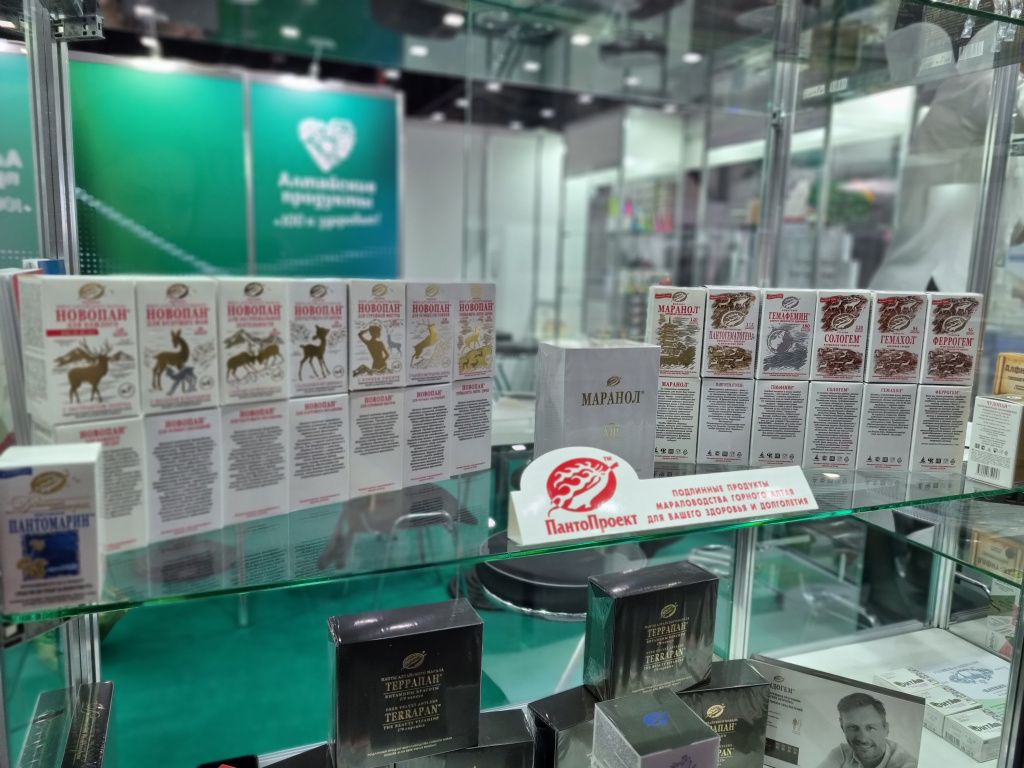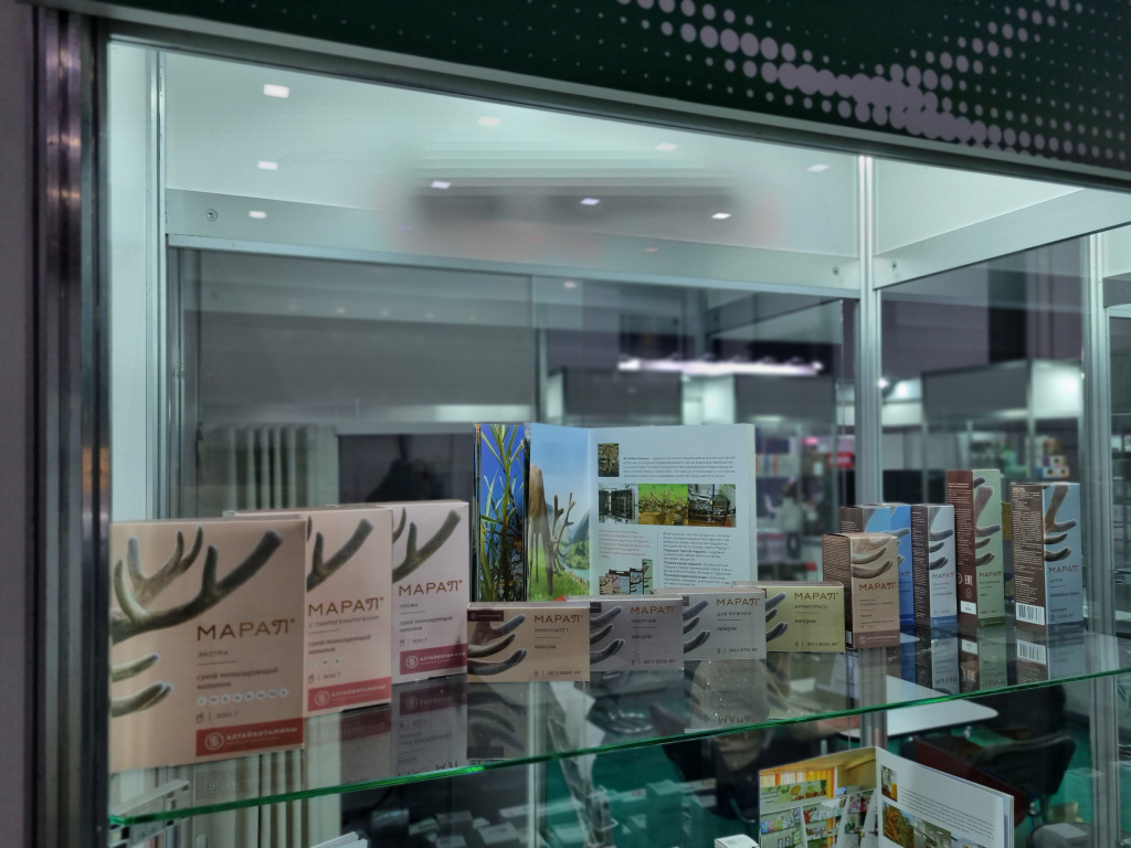 Также на стенде представлена гордость компании - серия средств «Марал» на основе пантов марала, обладающих большим набором биологически активных веществ, аминокислот, микро- и макроэлементов. Стоит отметить, на сегодняшний день «Алтайвитамины» — единственное фармацевтическое предприятие в стране, перерабатывающее продукцию пантового мараловодства в промышленном масштабе.