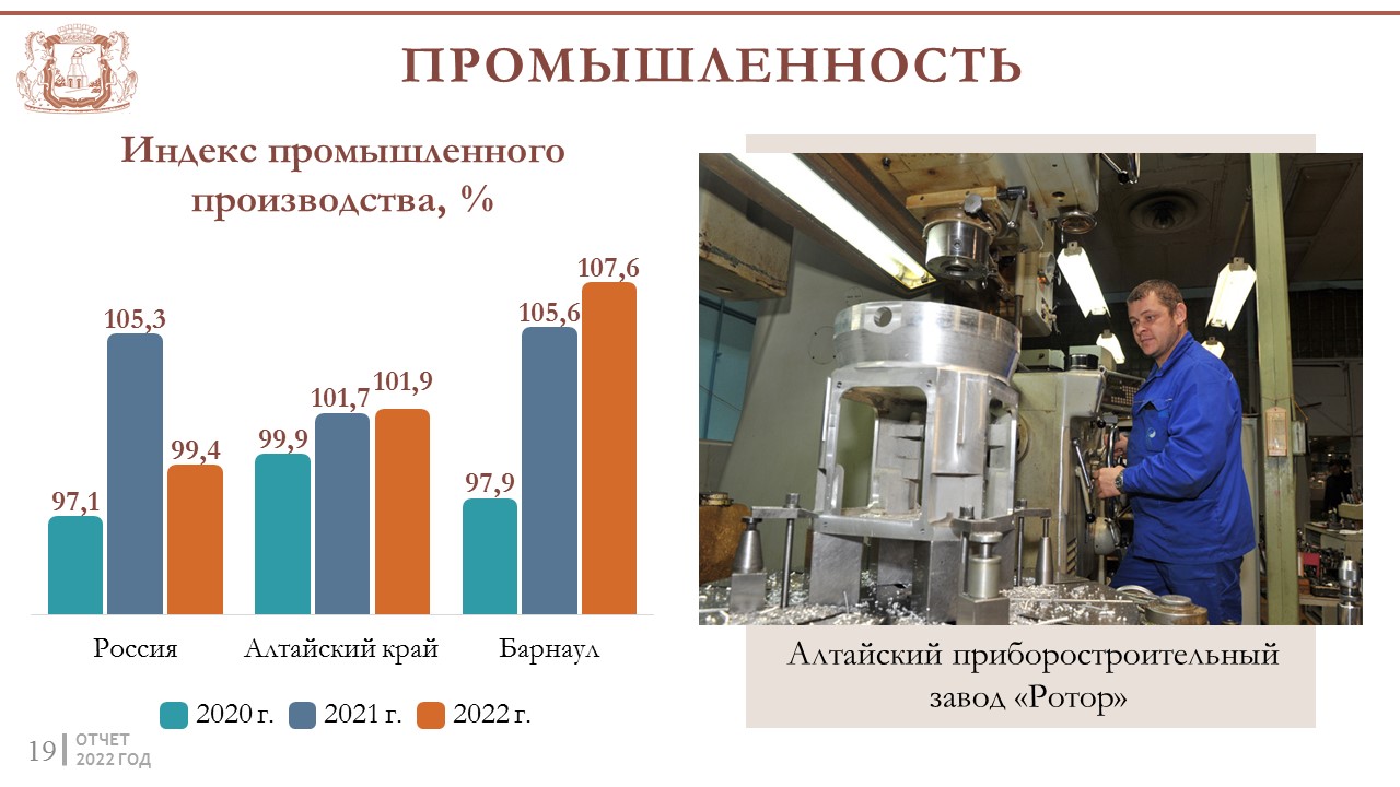 Индекс промышленного производства Барнаула превысил уровень 2021 года и составил 107,6%