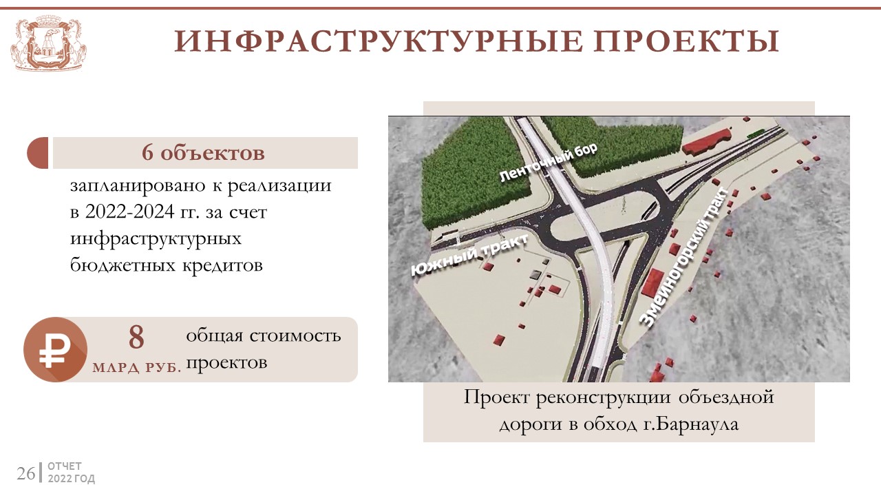 Город продолжает системно работать с инвесторами и сопровождает 26 проектов в различных отраслях экономики. Лидерами в замещении импорта стали АЗПИ, барнаульские заводы АТИ и прессового оборудования, станкостроительный завод, предприятия пищевой отрасли.