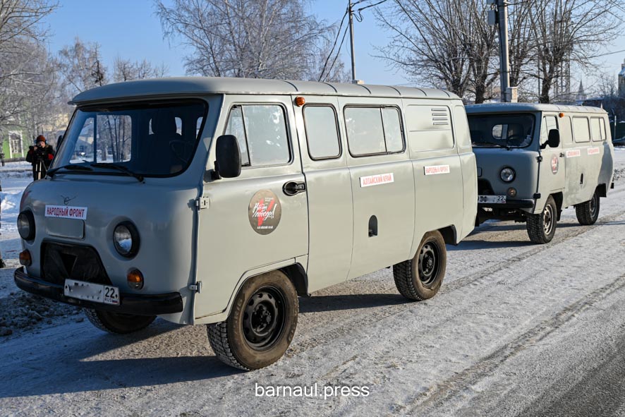 Сегодня, 24 декабря, в Барнауле на площади Свободы состоялась отправка двух автомобилей УАЗ, переданных администрацией города для выполнения задач нашими ребятами в зоне проведения специальной военной операции. Автомобили УАЗ обладают надёжностью и хорошей проходимостью в условиях бездорожья. В отправке приняли участие заместитель главы администрации города, руководитель аппарата Оксана Финк, руководитель фракции «Единая Россия» в Барнаульской городской Думе Вячеслав Перерядов, руководитель исполкома Народного фронта в Алтайском крае Алексей Чесноков.