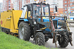Коммунальная спецтехника очищает от пыли городские автомагистрали и тротуары