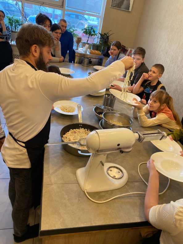 Мороз за окном не помешал сегодня детям из семей погибших участников специальной военной операции принять участие в самом вкусном мастер-классе от шеф-повара Михаила ресторана Onni.