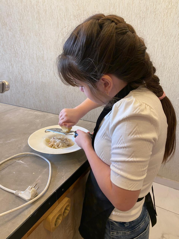 Ребята под чутким руководством и сопровождением Михаила самостоятельно приготовили популярный салат Цезарь и пасту Карбонара. Кроме того сегодня ребята узнали историю создания каждого блюда, из каких ингредиентов состоит самое вкусное тесто для пасты и кто такой Цезарь Кардини.