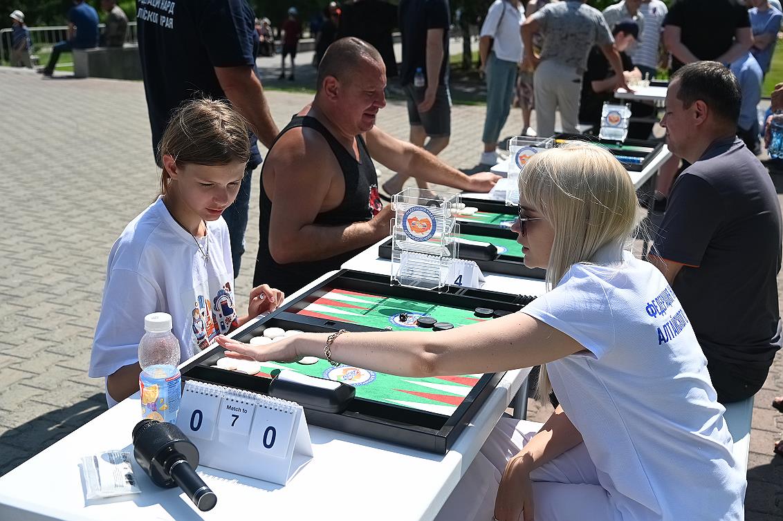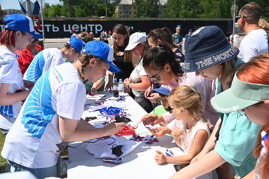 Аллея, ведущая к театру драмы, была занята разными активностями. Здесь можно было поиграть в быстрые шахматы и шашки, познакомиться с изделиями народных умельцев и мастеров. Волонтеры Победы раздавали горожанам ленточки триколора и приглашали поучаствовать в мастер-классах - мальчишки и девчонки с удовольствием мастерили себе и родителям симпатичные браслетики и брошки.
