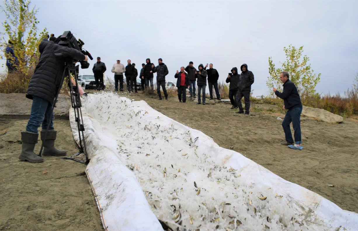 12 октября в русло Оби выпустили порядка 53 тысяч молодых сазанов.