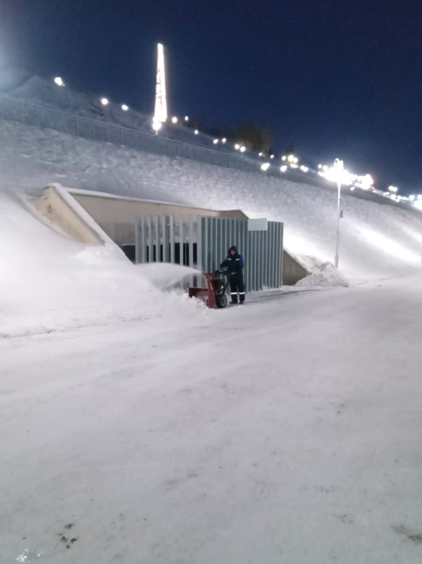 Работы ведутся как механизированным, так и ручным способом. Специалисты очищают тротуары, пешеходные дорожки, лестничные сходы от снега и наледи, проводят посыпку.
