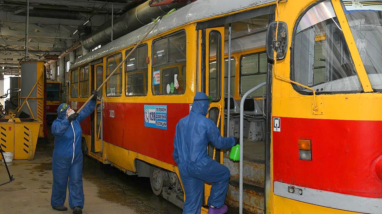 Ежедневно после смены в моечном комплексе депо проводится влажная уборка салонов трамваев и троллейбусов с применением дезинфицирующих средств. Перед началом работы кондукторы и водители обрабатывают антисептическим средством поручни и спинки сидений. Сотрудники также при себе имеют индивидуальные и дезинфицирующие средства защиты: маска, антисептик, салфетки. Дополнительно на конечных станциях после каждого рейса кондуктор обрабатывает салон дезинфицирующем составом. В помещениях конечных станций и диспетчерских организована дополнительная влажная уборка с применением дезинфицирующих средств.