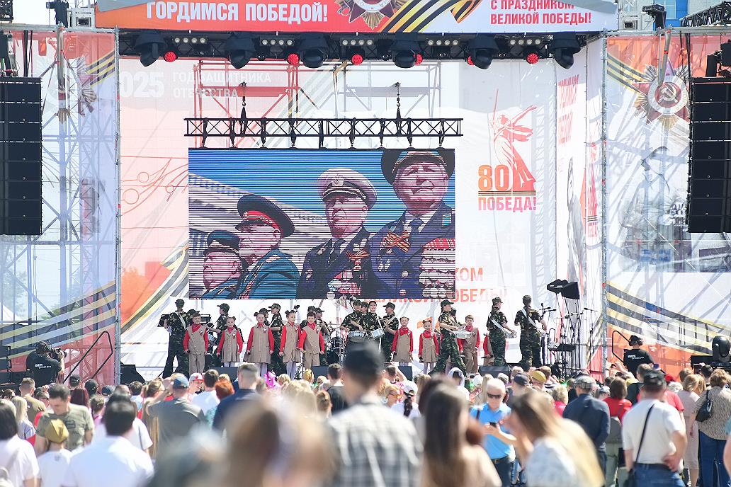 Основной праздничной площадкой в День Победы традиционно является площадь Сахарова. В 13.00 здесь стартовала концертная программа «Ради жизни на Земле». На главной городской площади собрались тысячи барнаульцев и гостей города.