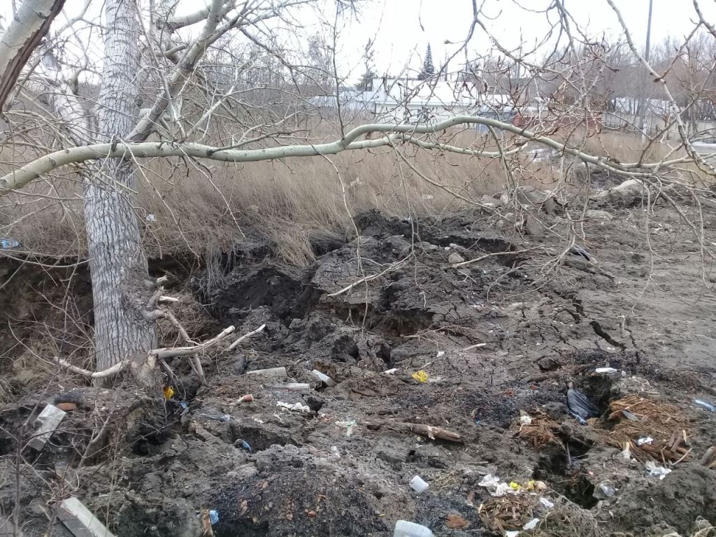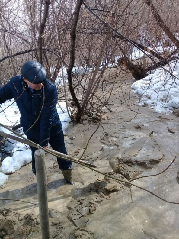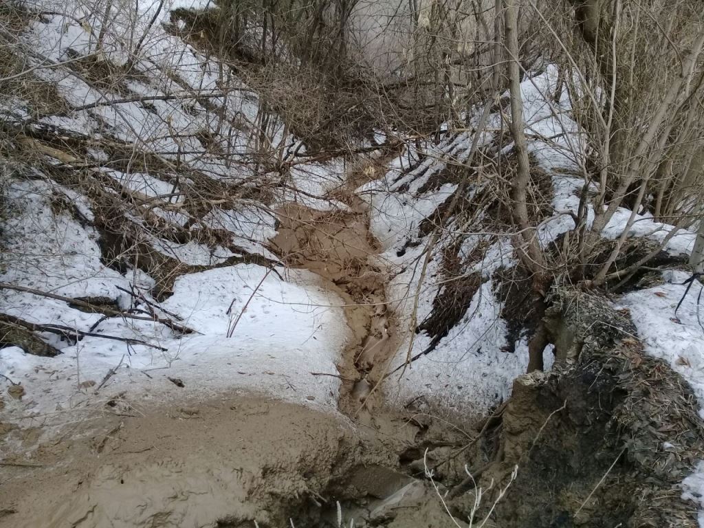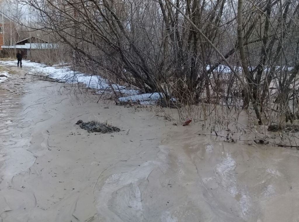 В результате осмотра установили, что на береговом склоне образовалась трещина, через которую в связи с таянием снега и выпадением осадков стекает вода с глиной. В результате началось подтопление домов и прилегающих участков по ул. Красноярской.
