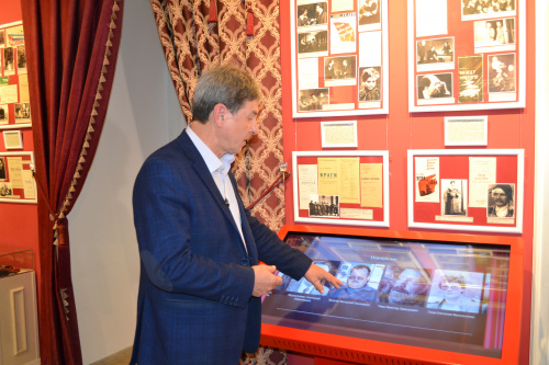 В театральном зале благодаря нацпроекту «Культура» появился сенсорный киоск. Сейчас театральный зал вмещает порядка 5 % из той коллекции театрального искусства, которая есть в музее. Поэтому теперь важная информация, например, о сценографах Алтая, представлена в электронном виде. Кроме этого, музей на федеральные средства приобрел два современных мобильных выставочных стенда.