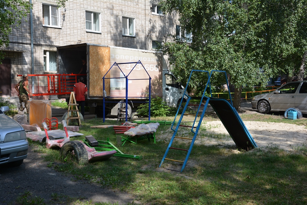 Новую детскую площадку построили в Ленинском районе Барнаула на средства городского гранта