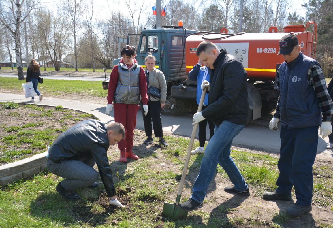 В их высадке приняли участие: глава администрации Ленинского района Евгений Авраменко, сотрудники Алтайского шинного комбината и студенты Алтайского транспортного техникума.