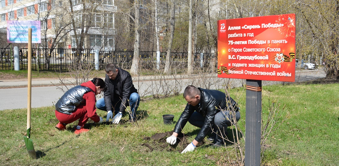 Аллею «Сирень Победы» имени Героя Советского Союза Валентины Гризодубовой заложили члены Совета женщин при главе города Барнаула к 75-летию Победы.