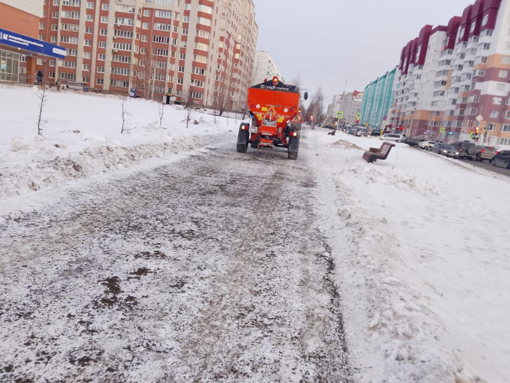 Противогололедная обработка тротуаров проведена на улицах Лазурная, 4-ая Западная, Германа Титова, Тимуровская, Глушкова, Малахова, на проспекте Космонавтов, Северном Власихинском проезде и на других участках уличной сети.