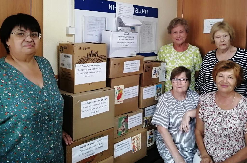 Активисты местного отделения Союза пенсионеров России по Индустриальному району Барнаула собрали канцелярские товары, книги для детей Славяносербского района ЛНР, подшефного Алтайскому краю.