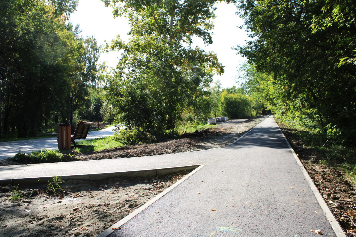 В Барнауле по нацпроекту «Инфраструктура для жизни» продолжаются благоустроительные работы на территории зеленой зоны в границах улиц Ленинградской, Энтузиастов, Антона Петрова (парк имени Ленина) и на территории за ТЦ «Европа» по улице Шумакова, 9.